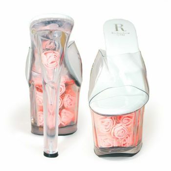 5. 【Rechercher/ルシェルシェ】キャバヒール 薔薇デザイン クリアサンダル[ホワイト×ピンク][22.5cm~25.0cm][17cmヒール]