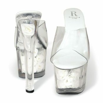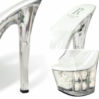 4. 【Rechercher/ルシェルシェ】キャバヒール 薔薇デザイン クリアサンダル[ホワイト][22.5cm~25.0cm][17cmヒール]