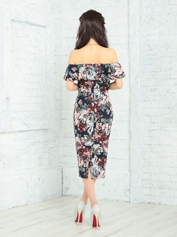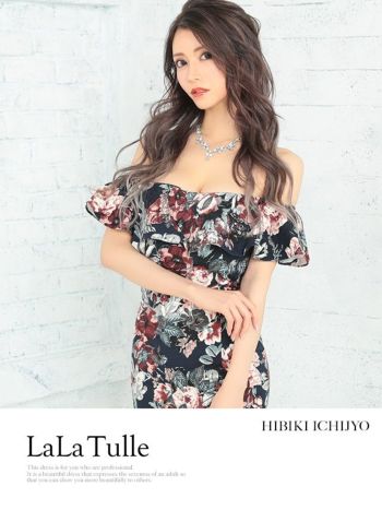 LaLaTulleの品番61020のフラワー柄×フリルオフショルタイトミニドレス