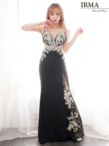 Lあり!豪快につけられたビジューがゴージャス♪ 【IRMA/イルマ】キャミソール ゴージャス ワンカラー フラワービジュー モチーフレース サイドウエストカット シアー タイトロングドレス(31353)