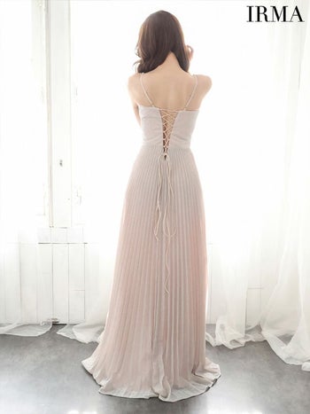 4. 【IRMA/イルマ】スリット バストクロス プリーツデザイン ウエストカット ビジュー キャミソール バースデー タイトロングドレス(41586)