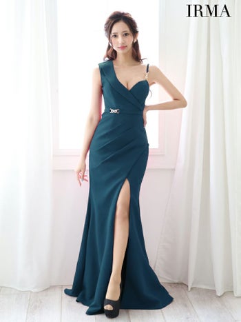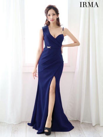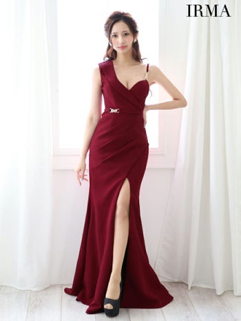 4. 【IRMA/イルマ】セクシー ワンカラー オープンバスト ウエストベルト ノースリーブ スリット タイトロングドレス (45993)