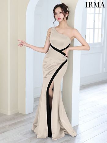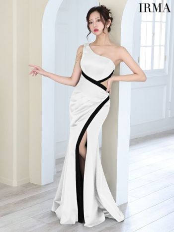 キャバドレス IRMA イルマ ワンショルダー スリット ショルダービジュー セクシー バイカラー タイトロングドレス