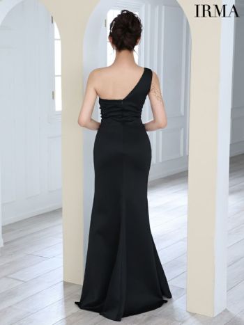 4. 【IRMA/イルマ】ワンショルダー スリット ショルダービジュー セクシー バイカラー タイトロングドレス (46002)