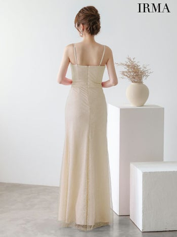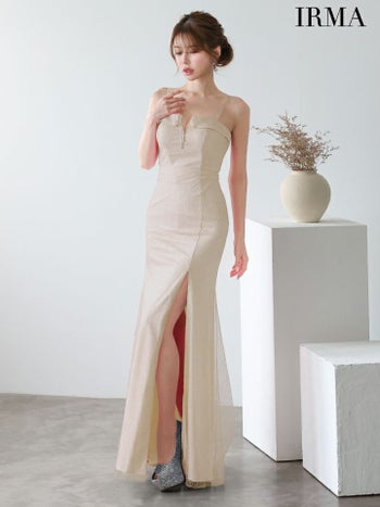 シンプルなのにキラキラで上品に煌めく☆ 【IRMA/イルマ】スリット ジップデザイン レース ワンカラー キャミソール タイトロングドレス (51926)