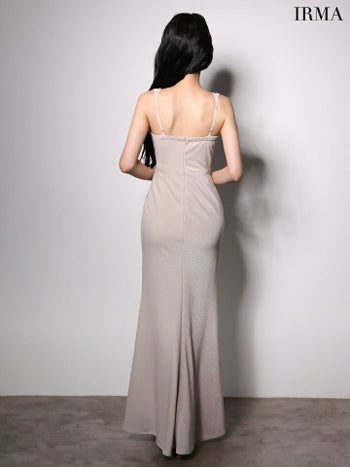 4. 【IRMA/イルマ】ノースリーブ ハートカット ラメニット ビジュー スリット タイトロングドレス(51998)