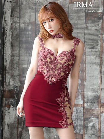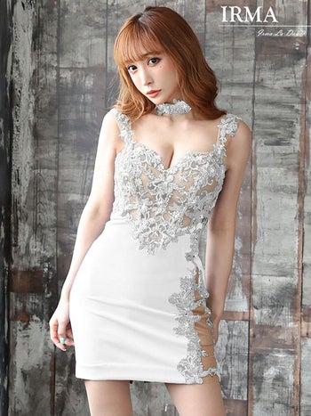 気品に満ちた女性へ導くキャバドレス♪ 【IRMA/イルマ】フラワーレース タイトミニドレス[真優川咲/高級キャバドレス着用][11967]