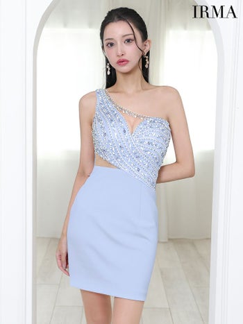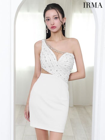 キャバドレス IRMA イルマ セクシー ワンショルダー バストシースルー ビジュー タイトミニドレス
