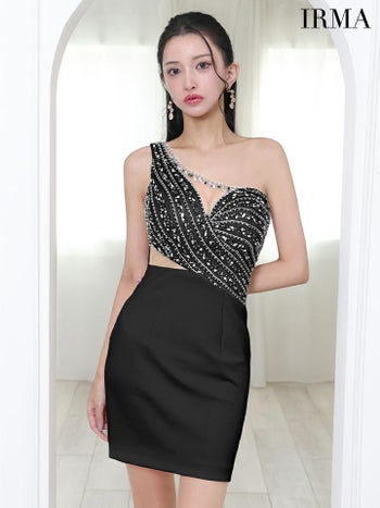 XSあり!大人の色気漂うデザイン♪ 【IRMA/イルマ】セクシー ワンショルダー バストシースルー ビジュー タイトミニドレス (51809)