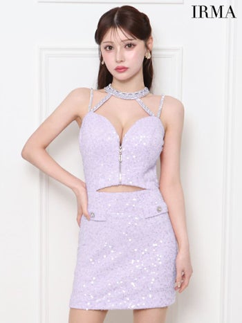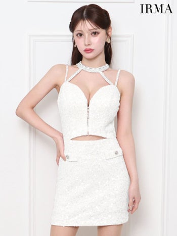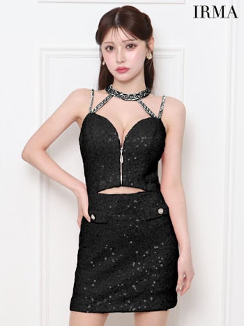 キャバドレス IRMA イルマ キャミソール ジップデザイン スパンコール ウエストカット ビジューネック タイトミニドレス