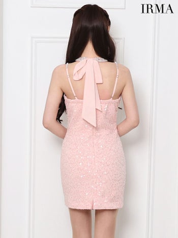3. 【IRMA/イルマ】キャミソール ジップデザイン スパンコール ウエストカット ビジューネック タイトミニドレス (51813)