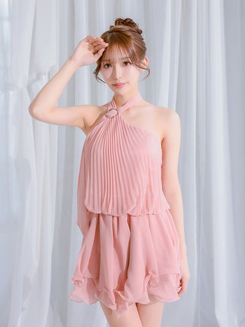 キャバドレス IRMA イルマ アコーディオンプリーツ カットオフ シフォン ホルターネック フレアミニドレス