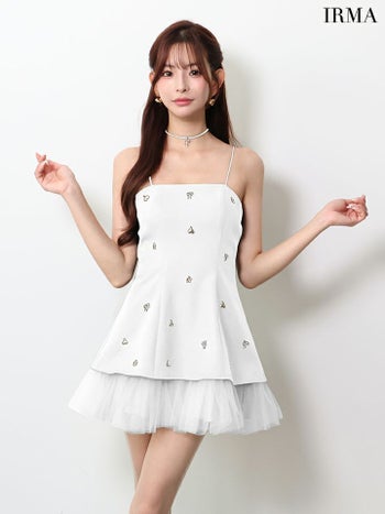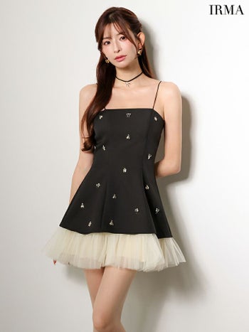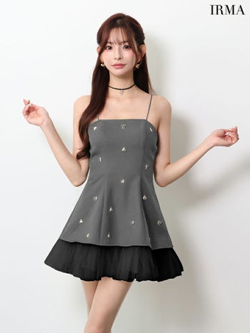 3. 【IRMA/イルマ】リボンチョーカー付き キャミソール スタッズ チュール フレアミニドレス (51980)