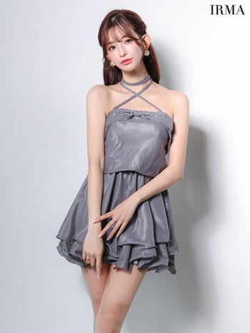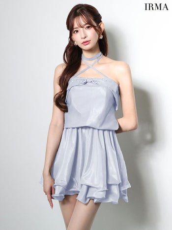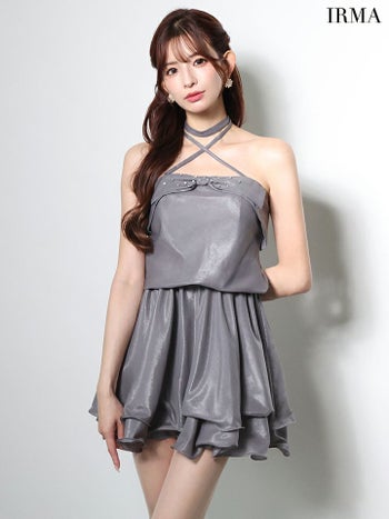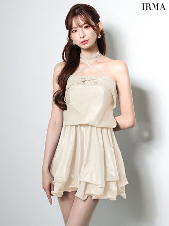 4. 【IRMA/イルマ】2way ホルターネック バストリボン ビジュー フリル フレアミニドレス (51982)