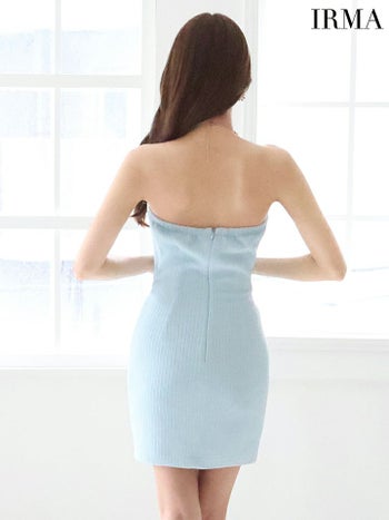 3. 【IRMA/イルマ】セクシー オープンバスト チェーンビジュー ホルターネック ウエストカット 柄織りニット タイトミニドレス(55027)