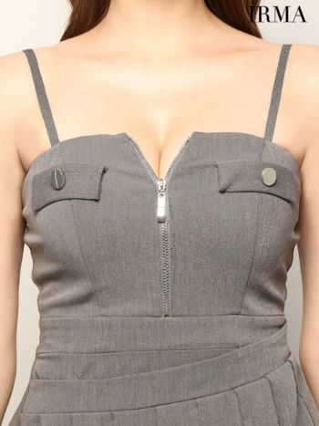 4. 【IRMA/イルマ】キャミソール ジップデザイン プリーツスカート アシンメトリー セクシー フレアミニドレス (55098)
