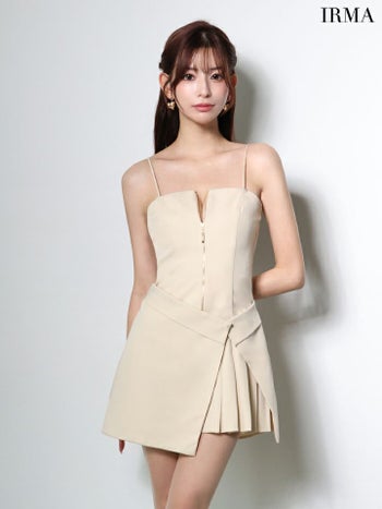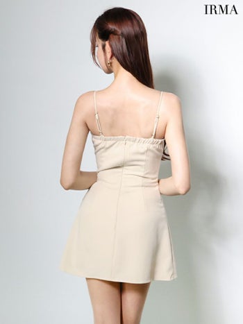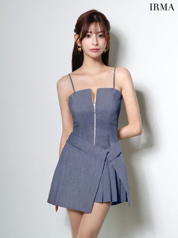4. 【IRMA/イルマ】キャミソール ジップデザイン ラップ風デザイン プリーツ ワンカラー フレアミニドレス (55109)