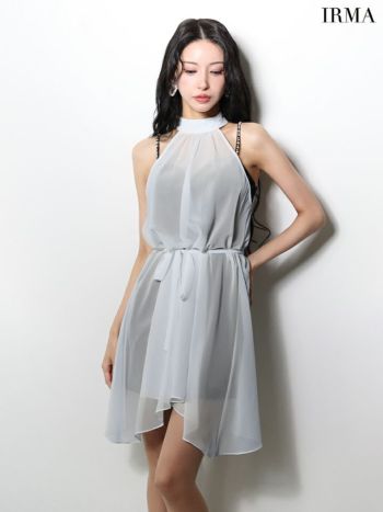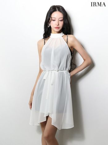 キャバドレス IRMA イルマ セットアップ 2way キャミソール シフォン ウエストリボン ホルターネック ビジュー フレアミニドレス