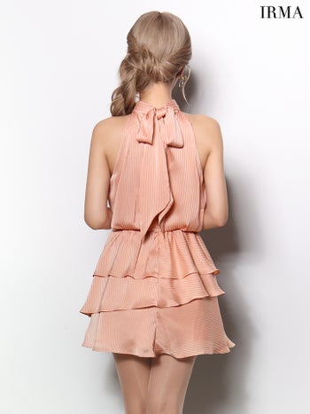 4. 予約商品【4月下旬入荷予定】【IRMA/イルマ】ホルターネック ティアード プリーツ フレアミニドレス(61076)