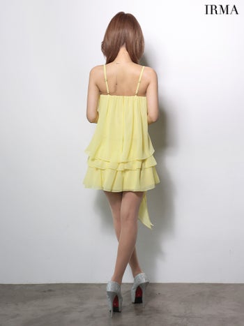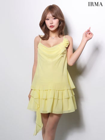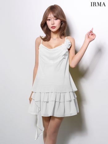 キャバドレス IRMA イルマ バストドレープ フラワーデザイン シフォン フリル ワンカラー セットアップ キャミソール フレアミニドレス