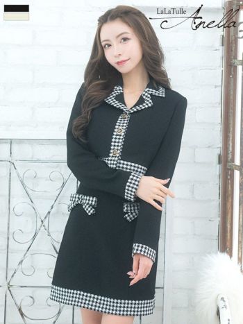 4. 【Anella/アネラ】ジャケット付き パイピング ガーリー セットアップ スーツ タイトミニドレス
