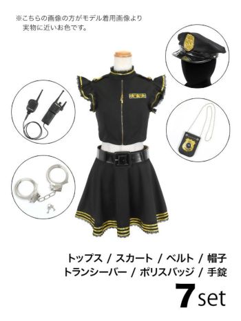 4. 【コスプレ】ポリス へそ出し フレアスカート フリル バストジップ セパレート 衣装7点セット[トップス/スカート/ベルト/帽子/トランシーバー/ポリスバッジ/手錠]