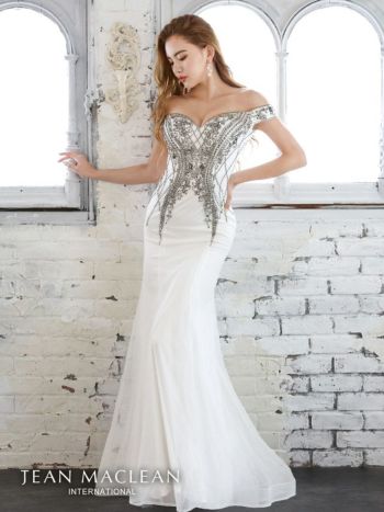 4. 【JEANMACLEAN/ジャンマクレーン】ビジュ マーメイド オフショルダー タイトロングドレス[カレン/高級キャバドレス着用]