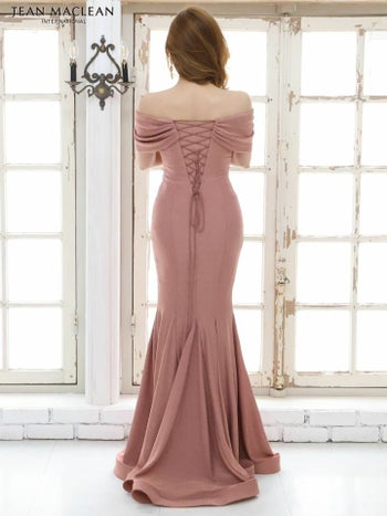 デコルテラインが美しいマーメイドラインのロングドレス。