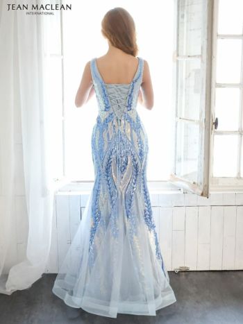【JEANMACLEAN/ジャンマクレーン】スパンコール 刺繍レース スピンドル マーメイド ノースリーブ タイトロングドレス[ネイビー][カレン/高級キャバドレス着用][31323-1]