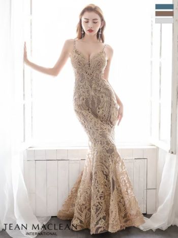 3. 【JEANMACLEAN/ジャンマクレーン】マーメイド バストカット ゴージャス 総刺繍レース タイトロングドレス(31515)