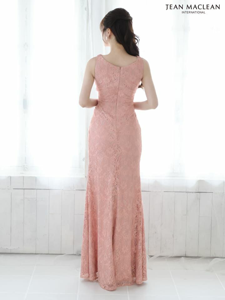 4. 【JEANMACLEAN/ジャンマクレーン】エレガント オープンバスト ノースリーブ フラワーレース スリット タイトロングドレス (51762)
