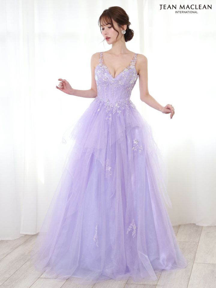 ボリュームのあるチュールが存在感抜群♪ 【JEANMACLEAN/ジャンマクレーン】エレガント オープンバスト ノースリーブ スパンコール 刺繍 チュール Aラインロングドレス (51828)