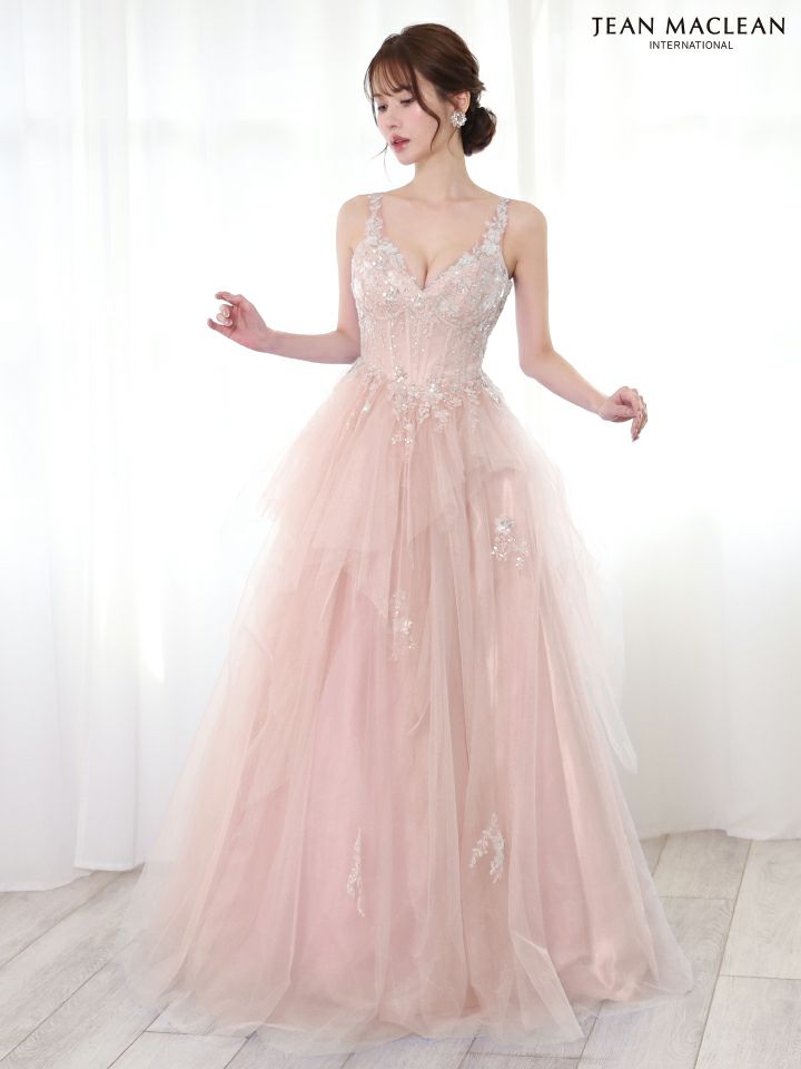キャバドレス JEANMACLEAN ジャンマクレーン エレガント オープンバスト ノースリーブ スパンコール 刺繍 チュール Aラインロングドレス