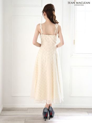 4. 【JEANMACLEAN/ジャンマクレーン】リボン パール ビジュー カットアウト シースルー フレア キャミソール Aラインロングドレス(51874)