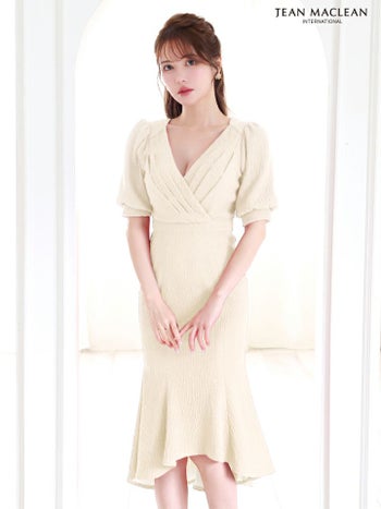 5. 【JEANMACLEAN/ジャンマクレーン】シンプル オープンバスト 袖あり 柄織りニット マーメイドロングドレス (55035)