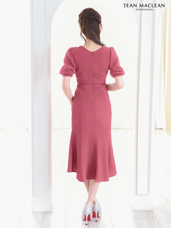 4. 【JEANMACLEAN/ジャンマクレーン】シンプル オープンバスト 袖あり 柄織りニット マーメイドロングドレス (55035)