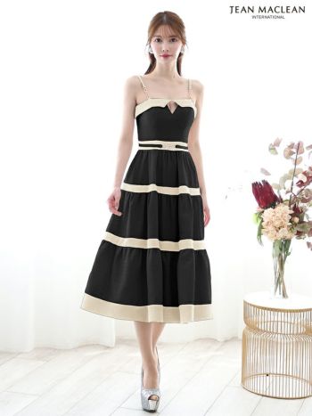 3. 【JEANMACLEAN/ジャンマクレーン】ウエストマーク カットアウト チェーン フレア キャミソール Aラインロングドレス(55082)