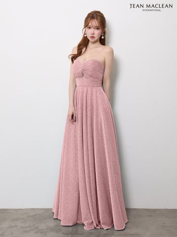 4. 予約商品【6月中旬入荷予定】【JEANMACLEAN/ジャンマクレーン】ベアトップ ラメグリッター ウエストマーク 美シルエット Aラインロングドレス(61145)