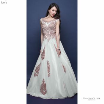 3. 【JEANMACLEAN/ジャンマクレーン】刺繍レースシフォンチュール フレアロングドレス[ホワイト]