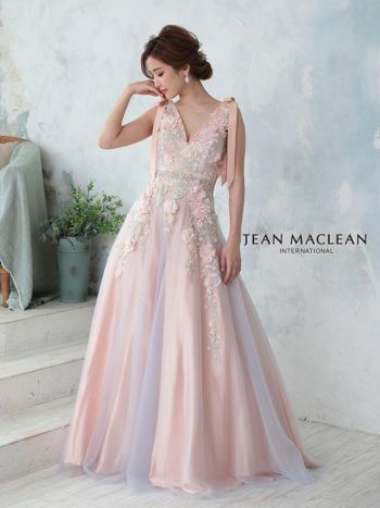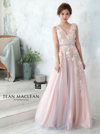 3. SALE【JEANMACLEAN/ジャンマクレーン】肩リボン立体フラワー刺繍 チュール バースデー プリンセス フレアロングドレス(91648)