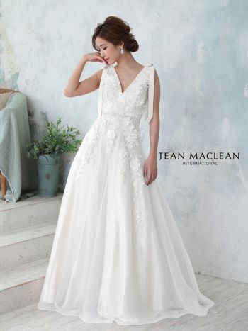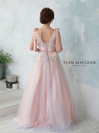 4. SALE【JEANMACLEAN/ジャンマクレーン】肩リボン立体フラワー刺繍 チュール バースデー プリンセス フレアロングドレス(91648)