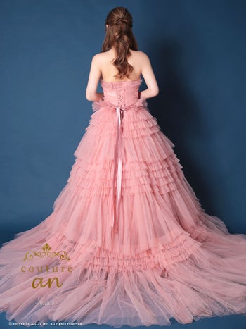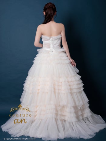 3. 【couture an/クチュール アン】ワンカラー ウエストリボン ベアトップ フリル チュール レースアップ バースデー Aラインロングドレス(aocwd017)