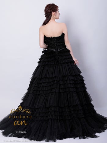 4. 【couture an/クチュール アン】ワンカラー ウエストリボン フリル チュール レースアップ ベアトップ バースデー Aラインロングドレス(aocwd017)