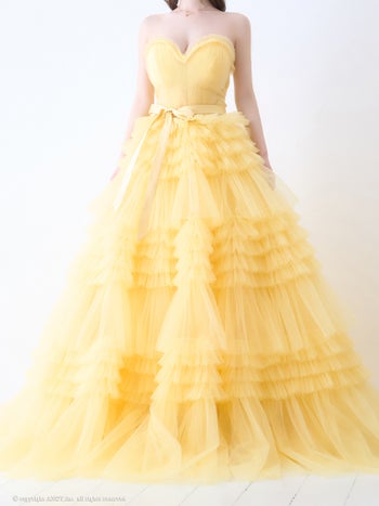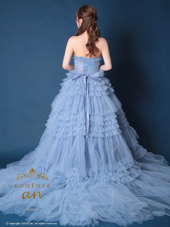 3. 【couture an/クチュール アン】ウエストリボン ワンカラー フリル チュール レースアップ ベアトップ バースデー Aラインロングドレス(aocwd017)