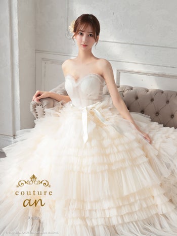 4. 【couture an/クチュール アン】ウエストリボン ワンカラー フリル チュール レースアップ ベアトップ バースデー Aラインロングドレス(aocwd017)