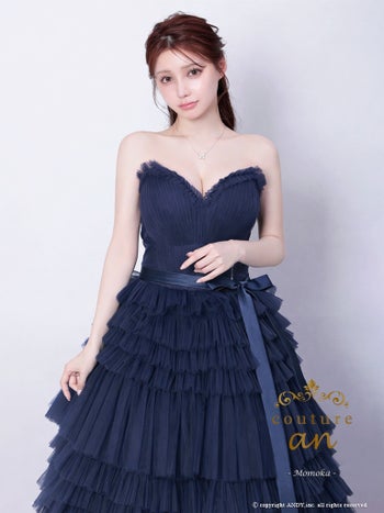 キャバドレス couture an エストリボン ワンカラー フリル チュール レースアップ ベアトップ バースデー Aラインロングドレス