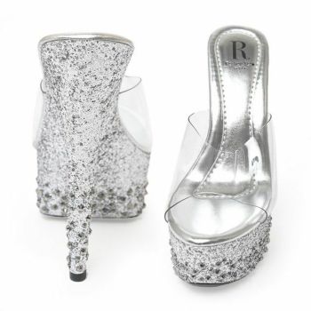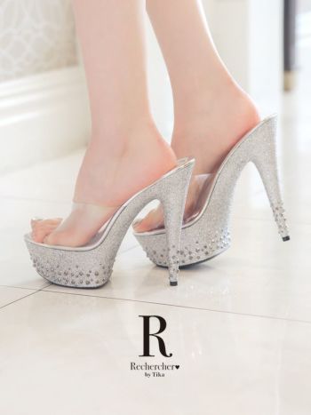 厚底部分がグリッターラメデザインになっているクリアサンダル