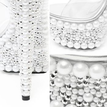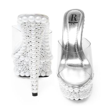 【Rechercher/ルシェルシェ】キャバヒール パールデコレーションクリアサンダル[シルバー][22.5cm~25.0cm][14.5cmヒール]