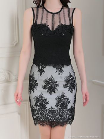 キャバドレス タイトミニドレス an アン レース フラワー ノースリーブ セットアップ