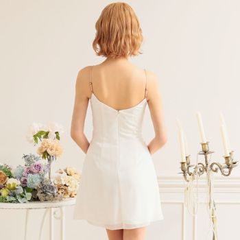 4. 【Angel R/エンジェルアール】キュート パールチェーン バストタックビジュー キャミソール シフォン フレアミニドレス (AR24213)